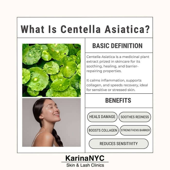 In professional-grade skincare, like what we use at Karina NYC, you’ll see concentrations that are effective without being irritating. Ideally, you want a product that not only includes Centella but also lists its standardized extracts with percentages, so you know what your skin is actually getting.
