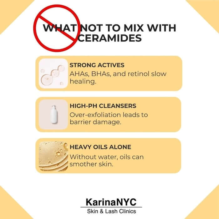 - High-pH cleansers. These strip your skin of natural lipids, including ceramides. Opt for pH-balanced cleansers instead.