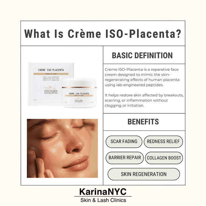 Crème ISO-Placenta is for that rebuilding phase. Think of it as rehab for your skin barrier.