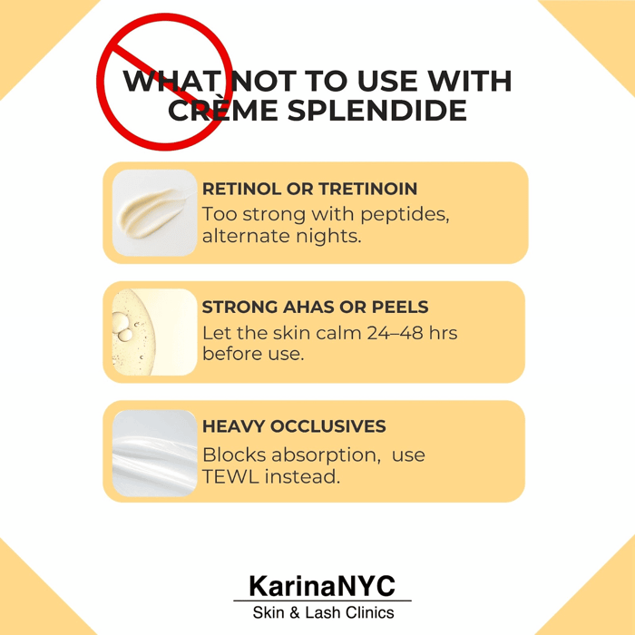 This is a question I get from clients who buy Splendide online or without proper guidance. The formula itself is non-comedogenic, but if you layer it over the wrong base, or use it too soon after aggressive exfoliation, you can create chaos.