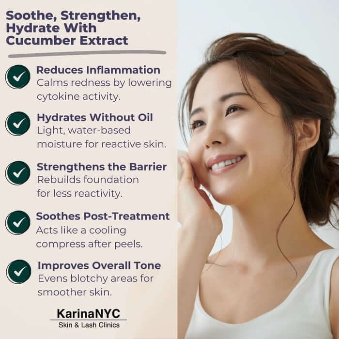 Whether your skin is recovering from acne, reacting to pollution, or prone to rosacea, cucumber extract can make a visible difference. At KarinaNYC, we see real results when pairing it with targeted routines and barrier-repairing support.