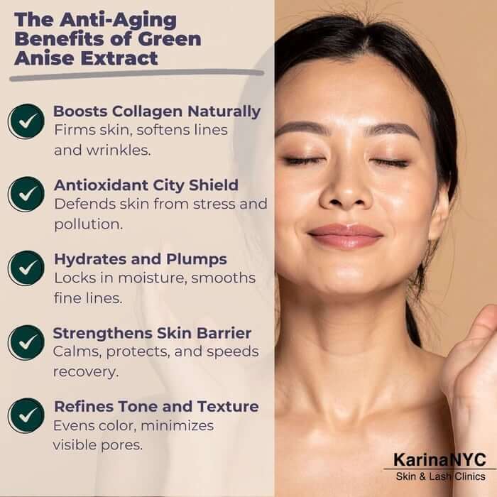 Green anise extract has quietly become one of skincare’s most effective tools against fine lines. With its antioxidant power and anti-glycation benefits, it’s ideal for skin showing early signs of aging.