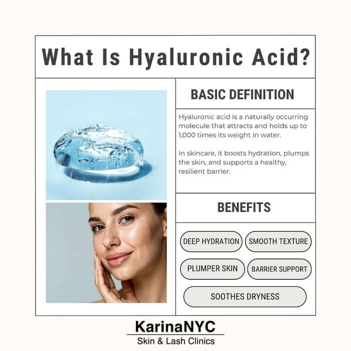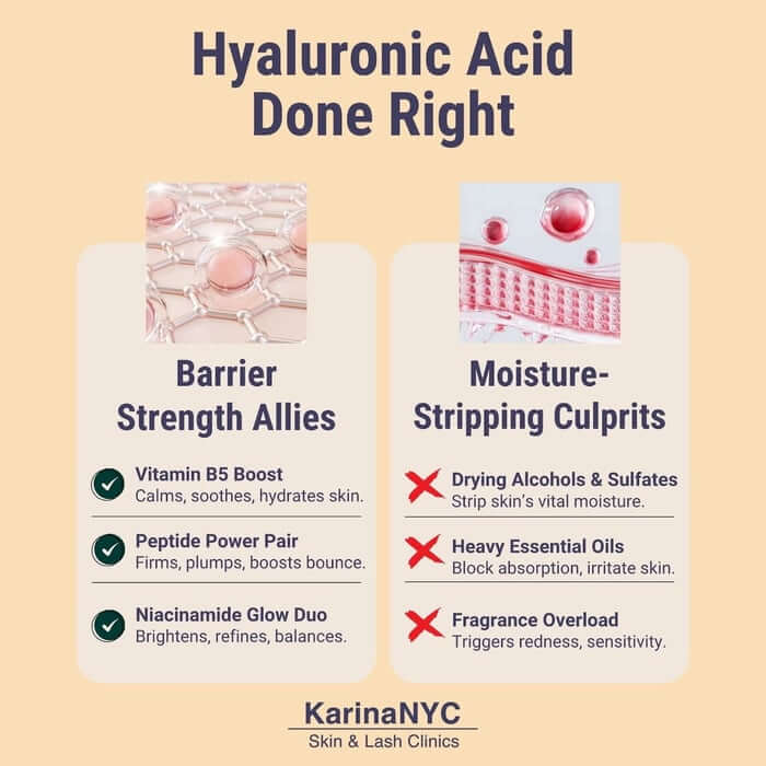 When it comes to plump skin, these five products deliver strategic hydration with pharmaceutical-grade hyaluronic acid and barrier-supportive ingredients. No fluff. No filler. Just the kind of intelligent skincare I stand behind every day at KarinaNYC.