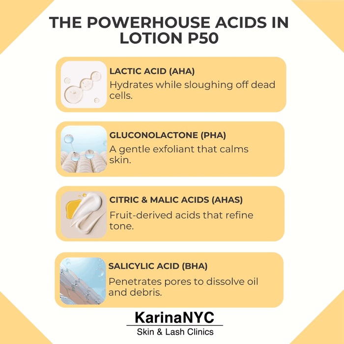 At Karina NYC, we see clients transform their skin texture, clarity, and tone using P50 as a foundation.