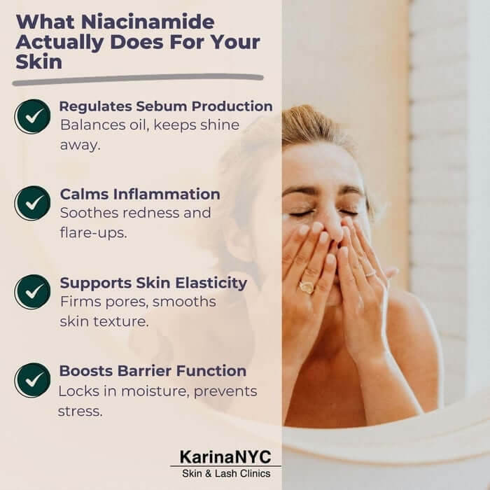 At KarinaNYC, we don’t just hand you a product; we build your whole routine around it. Because when niacinamide works, it works beautifully, but only when used correctly.