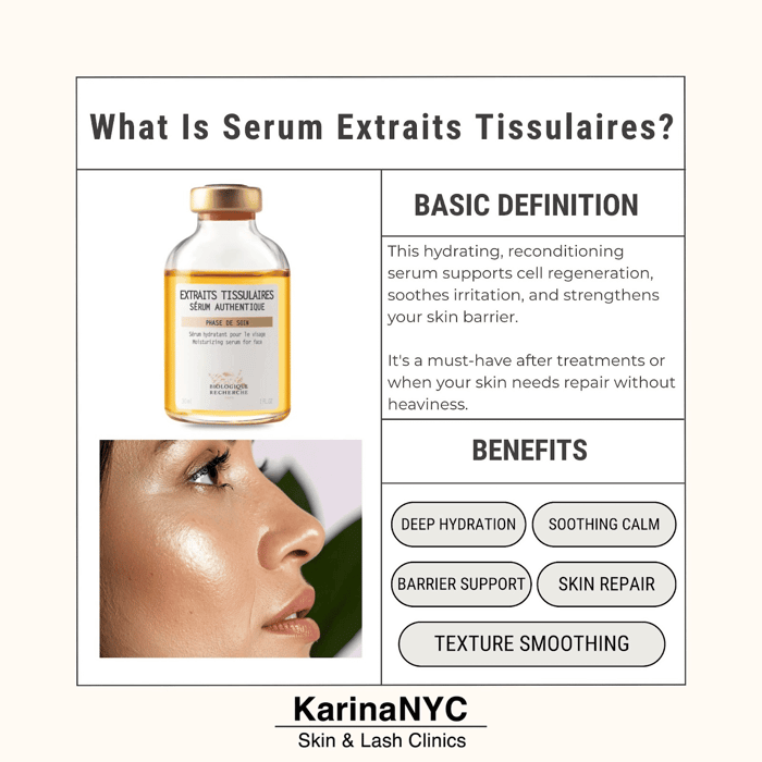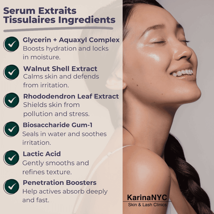 If your skin feels confused, tight one moment, oily the next, Serum Extraits Tissulaires might be exactly what you need. At KarinaNYC, we’ve helped thousands of high-commitment clients rebalance their skin with expert-selected routines.