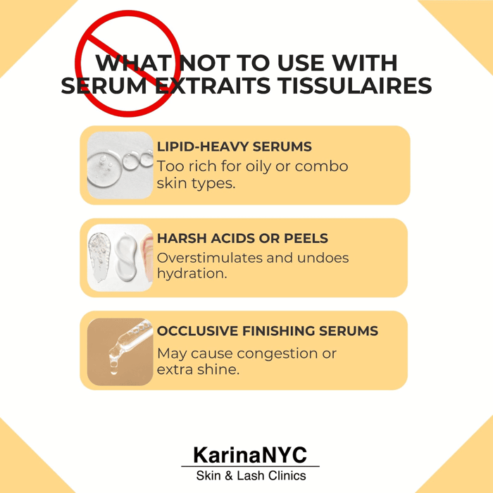 Like every great serum, Extraits Tissulaires shines brightest when paired wisely. But there are a few combinations I steer clients away from to keep their skin balanced and calm.