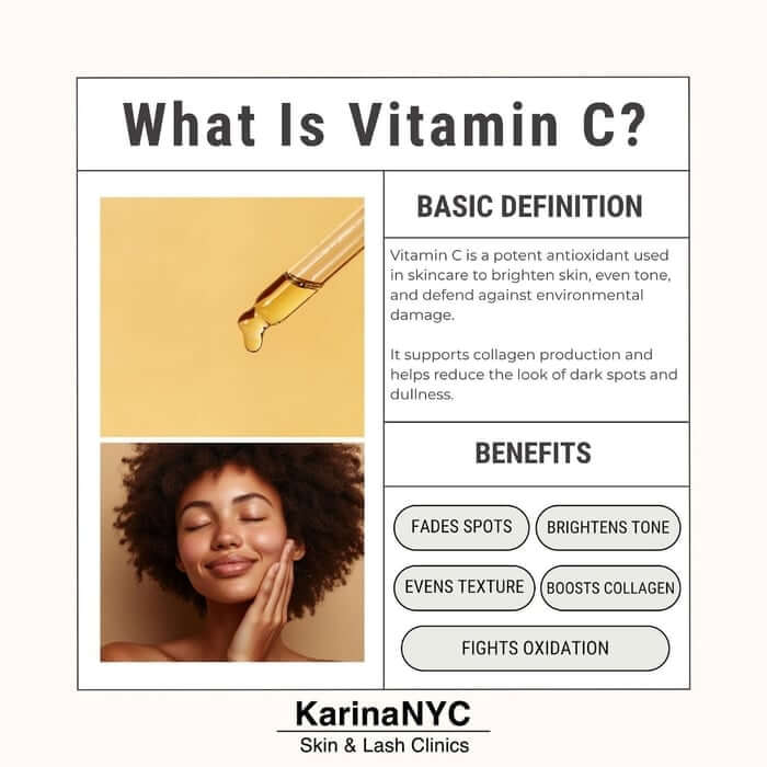 Storage matters. Keep it in a cool, dark place. Vitamin C hates heat and light. That pretty glass bottle sitting by your bathroom window? Ruined in a week. I only stock formulas that are properly stabilized and stored, we don’t take shortcuts at KarinaNYC.