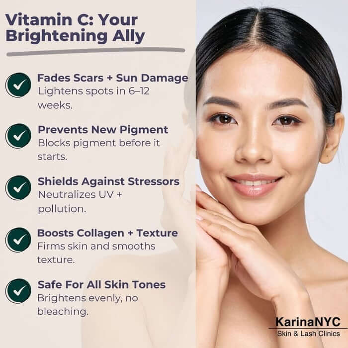 It’s not enough to just “add vitamin C” to your cart and hope for the best. When clients come to us at KarinaNYC, we help them understand how to use it, what to pair it with, and when to expect results.