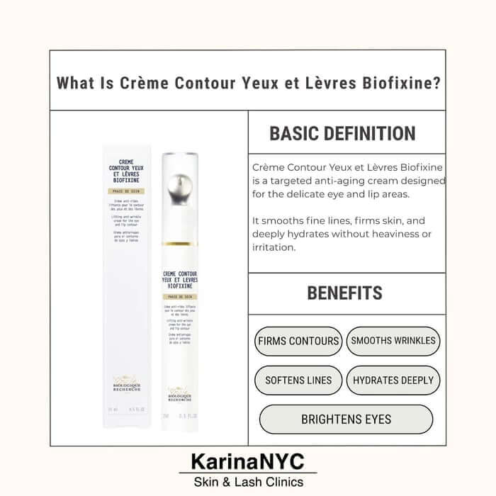 Crème Contour Yeux et Lèvres Biofixine is a firming, line-smoothing eye and lip cream from Biologique Recherche, and it’s a game changer. This isn’t your average “hydrating eye gel.” It targets expression lines, crepiness, puffiness, and even dull tone.