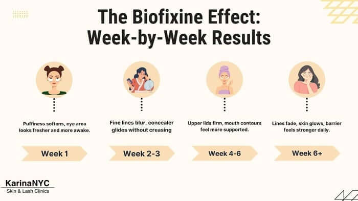 This is why Biofixine is a staple in our KarinaNYC studio. The results are tangible, week after week, and when combined with professional facials, they accelerate beautifully.