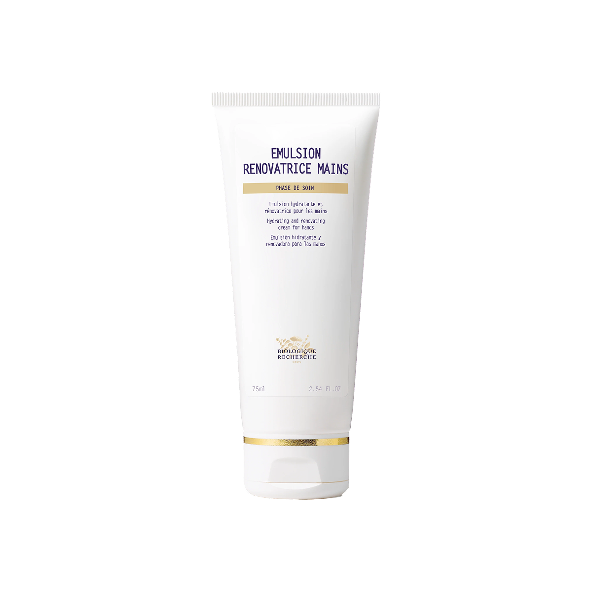 On a clean and dry skin, apply a small quantity of Emulsion Rénovatrice Mains to the back of hands. Gently massage concentrating on weakened zones. Use as often as needed.