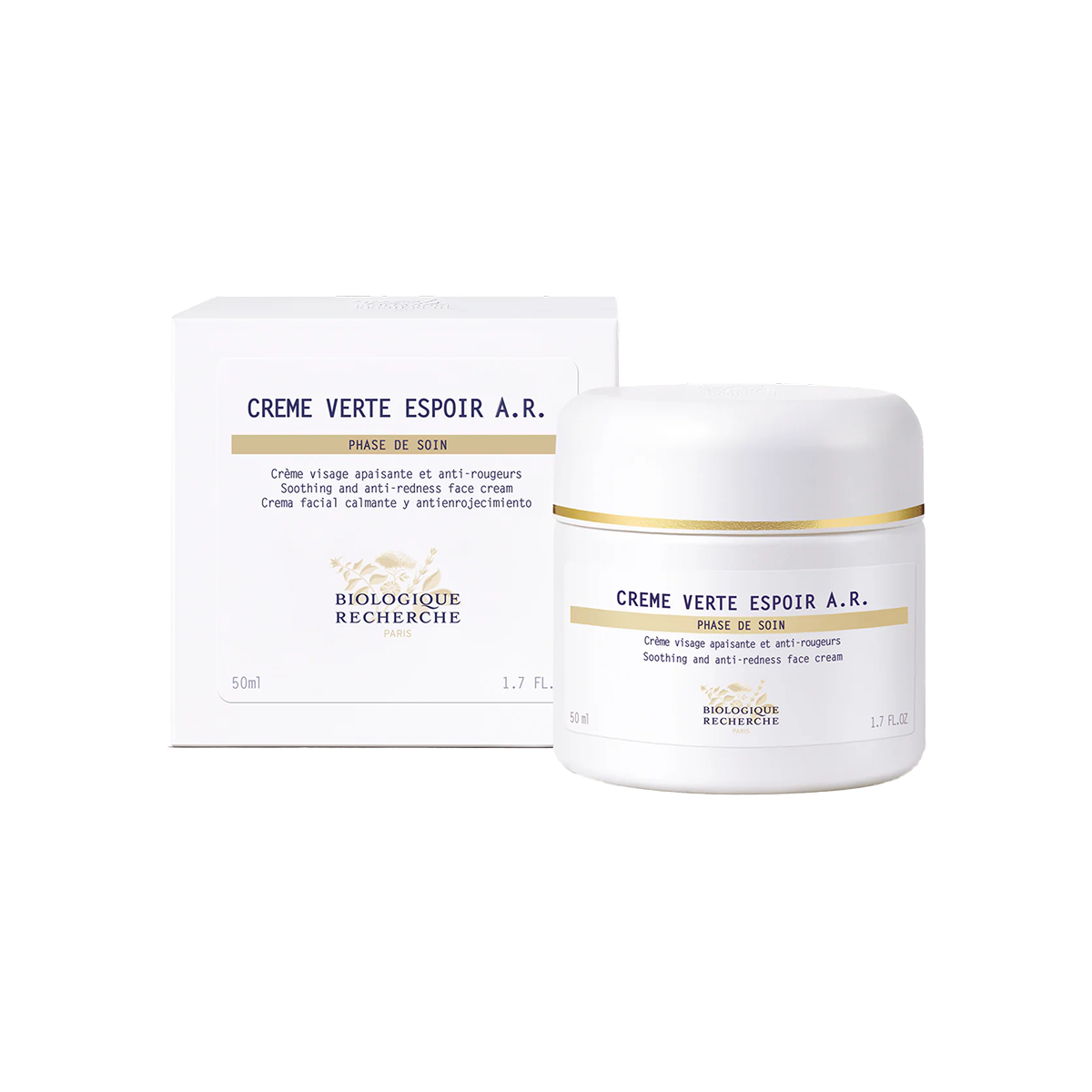 Crème Verte Espoir A.R. prevents and reduces the signs of rosacea. It acts on broken capillaries, visibly reducing their appearance to decrease the extent and intensity of chronic redness. The sensitive skin reactions that cause occasional patches of redness are also subdued. Fragile and reactive skin feels instantly soothed, and the complexion regains a more uniform appearance.