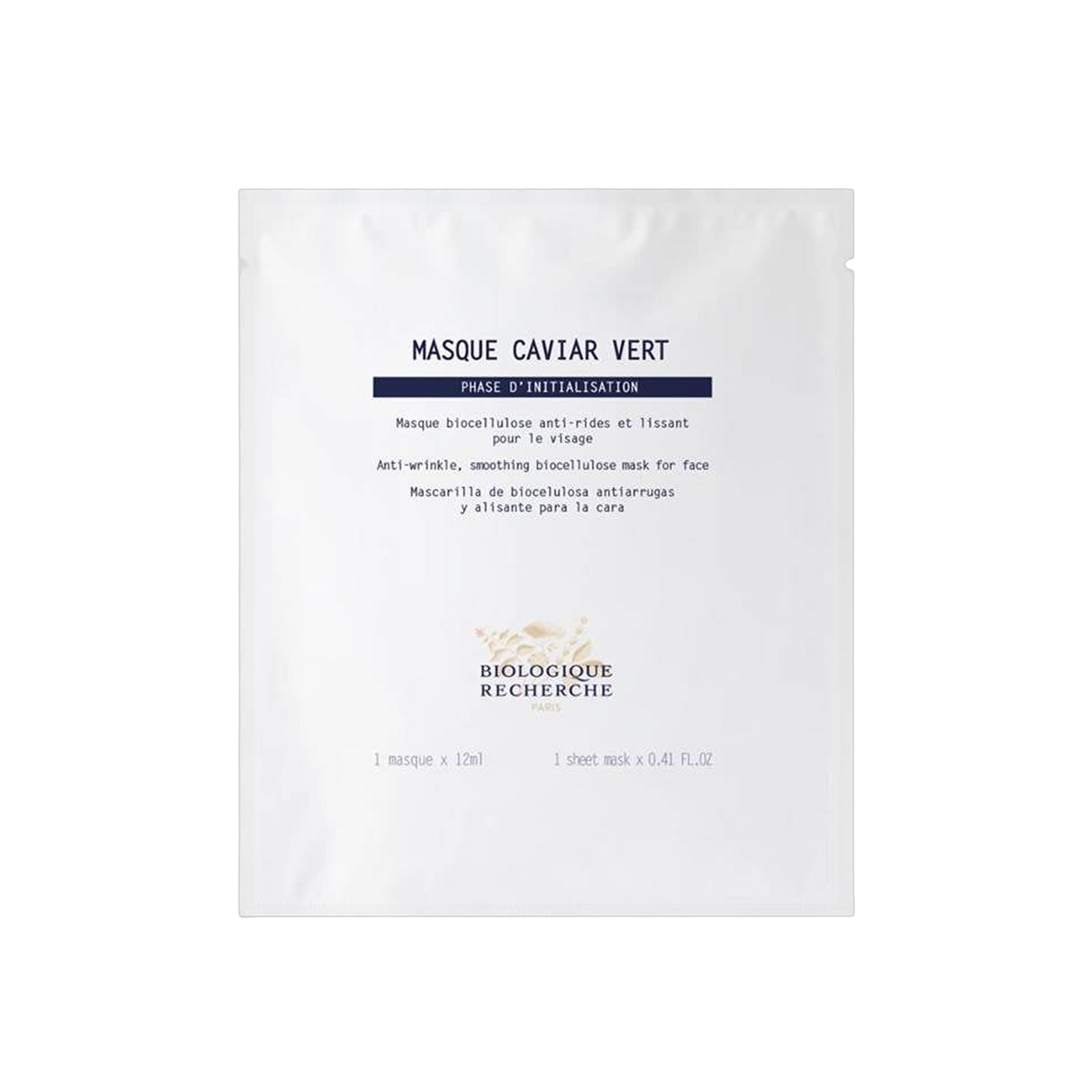 Masque Caviar Vert (1 unit) is infused with Green Caviar, a seaweed rich in essential minerals. This “plant-based caviar” comes in bunches and is reminiscent of true caviar. It has the exceptional ability to act on the dermal-epidermal junction by boosting the synthesis of collagens I and IV, laminin-5, and glycosaminoglycans, all essential components of the extracellular matrix.